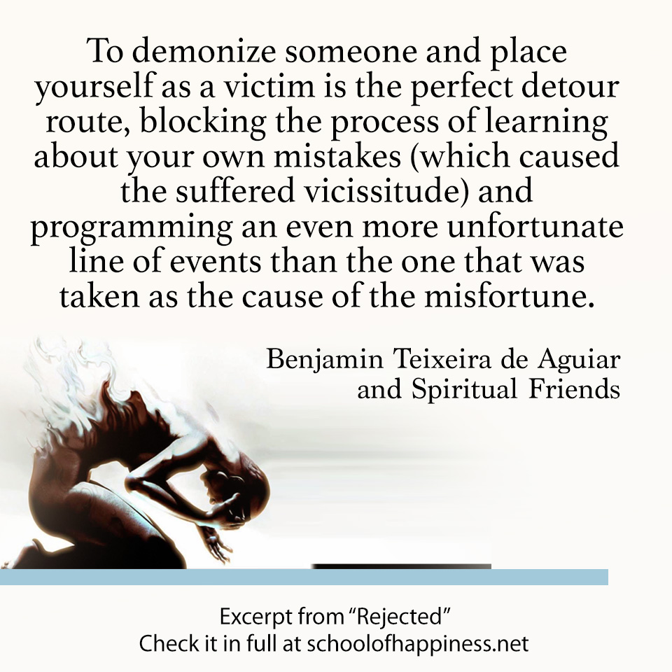 To demonize someone and place yourself as a victim is the perfect detour route, blocking the process of learning about your own mistakes (which caused the suffered vicissitude) and programming an even more unfortunate line of events than the one that was taken as the cause of the misfortune.