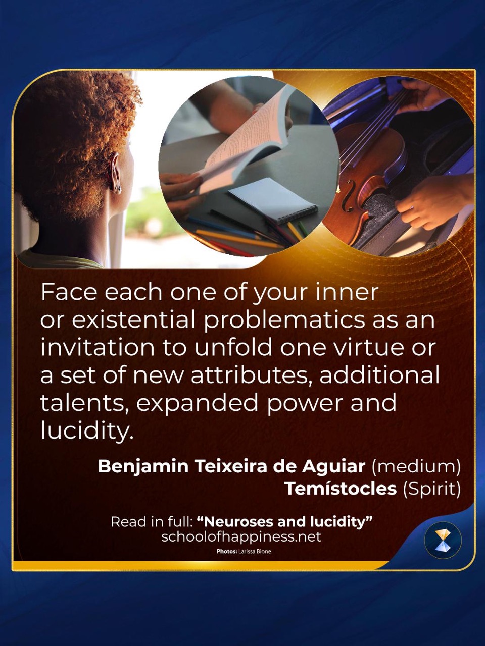In everything, strive to be lucid, attentive to the fact that the mind has a natural tendency to descend to atavistic levels of automatic functioning, and is therefore primitive in its judgments and reactions to the external world. Pray, meditate, observe acutely. Go to therapy, consult your spiritual counselor. Read, research, inform yourself by any means at your disposal. And, finally, question everything, mainly your certainties and victim complexes, surrendering to God and His-Her emissaries, when the intuition of the best thing to do, not postponing, however, any initiative that becomes/is urgent and necessary.